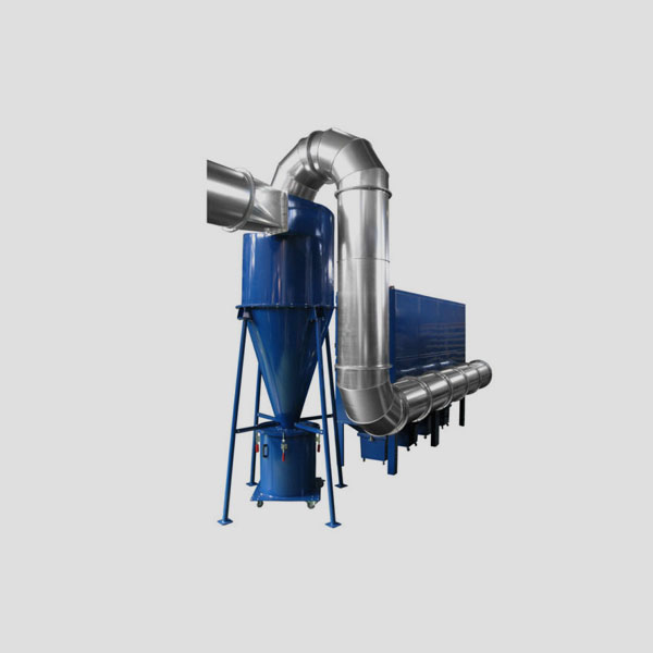 將機組放置獨立的除塵間,配置相應(yīng)的風(fēng)管及吸塵罩與除塵器連接,插上電源,開啟風(fēng)機建,含塵空氣從塵源經(jīng)吸塵罩、風(fēng)管、進風(fēng)口進入箱體。含塵氣由塵氣室上部的入口進入,經(jīng)濾筒過濾后進入凈化室并口排出。下行的氣流有利粉塵的沉降,率的濾筒進入凈化室的氣流滿足除塵要求。當(dāng)濾筒中濾料表面的積塵增多需要清灰時,控制系統(tǒng)...